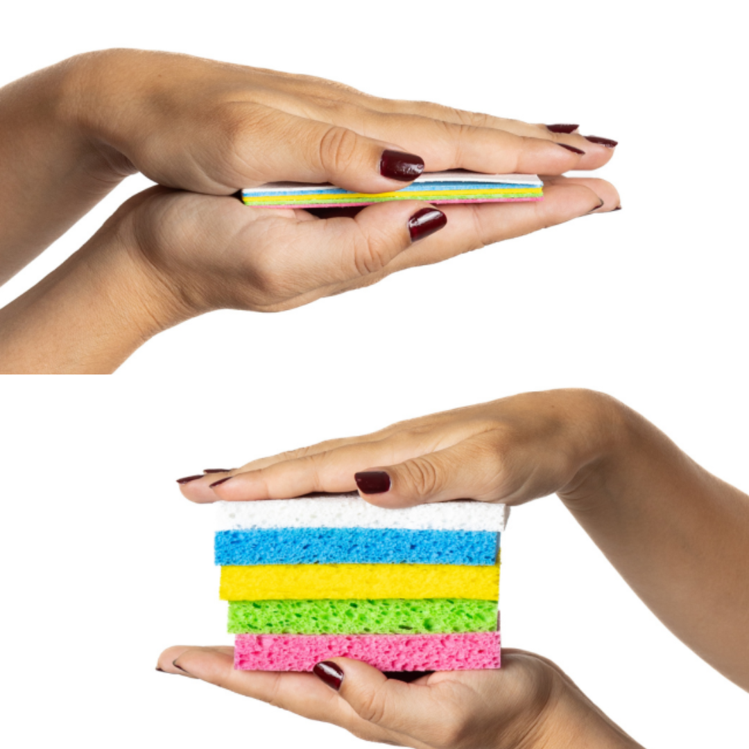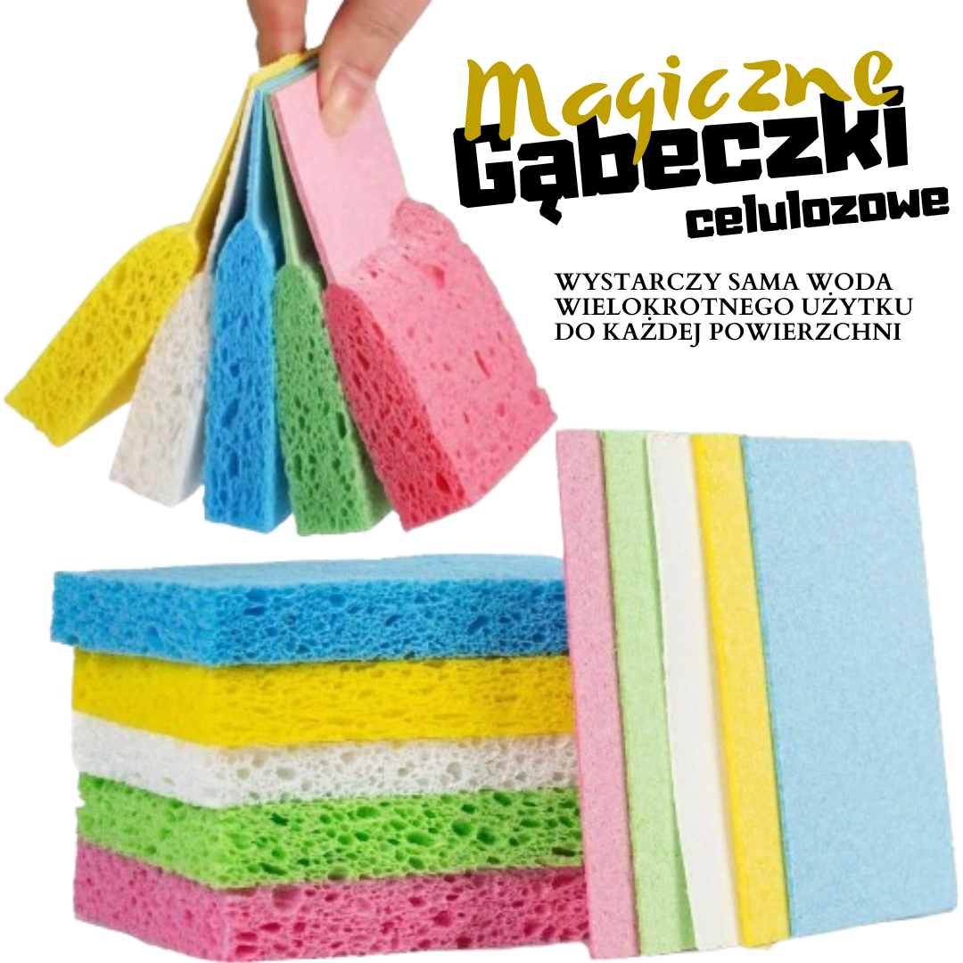 Gąbki dostarczane są w formie cienkich, lekkich arkuszy – po namoczeniu natychmiast zwiększają swoją objętość i zamieniają się w miękkie, chłonne ściereczki gotowe do działania.♻️